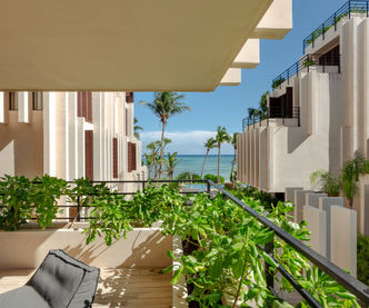 This exquisite, fully furnished 1 Bedroom / 2 Bathrooms, beach view villa is perfectly situated on the first floor with spectacular sweeping views of the beach and poolside from the entertainment size terrace, situated over one level with an open plan kitchen, dining, and living flowing seamlessly out to the large terrace, with plunge pool overlooking the uninterrupted views of the Caribbean ocean. A total of 1400 sq ft in size, and 841 sqft of internal space. Beautiful, high-end, elegant finishes throughout.